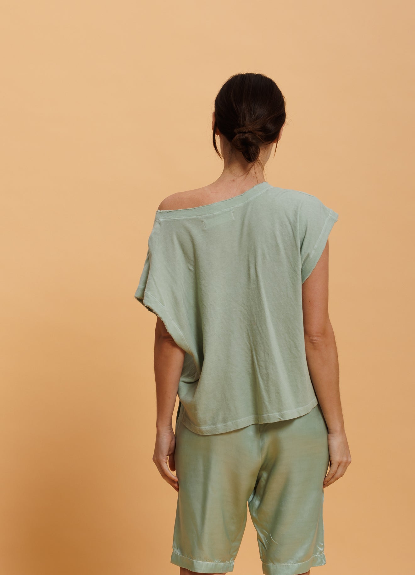 CUT OFF TEE ALOE Details CUT OFF TEE ALOE Unavailable $121.00 XS - $121.00 S - $121.00 M - $121.00 SIZE XS S M Select options 100% Organic Gauzy Cotton JerseyRead more 100% Organic Gauzy Cotton Jersey Share